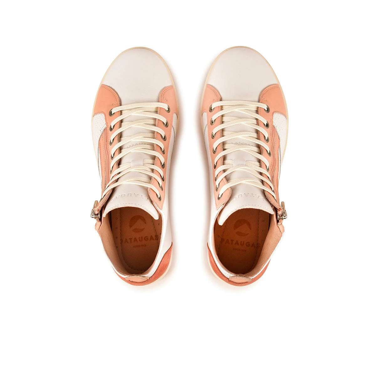 La basket montante PALME est retravaillĂ©e cette saison grĂące Ă son petit empiĂšcement perforĂ© qui lui apporte une touche estivale et respirante. Nouvelle forme pour notre Palme sans boucle! Celle-ci emprunte les codes du sport ambiance tennis avec son cuir blanc lĂ©gĂšrement perforĂ© et ses accents couleurs. Le modĂšle PALME vĂ©ritable rĂ©fĂ©rence en terme de confort grĂące Ă sa semelle en injectĂ© ultra-souple, vous apportera une grande flexibilitĂ© dans vos mouvements. Sa tige en cuir fin et lĂ©ger permet Ă cette chaussure d’Ă©pouser parfaitement la morphologie de votre pied. Son mix de cuirs est Ă©lĂ©gant et sa fermeture Ă©clair est trĂšs pratique pour faciliter le chaussant.